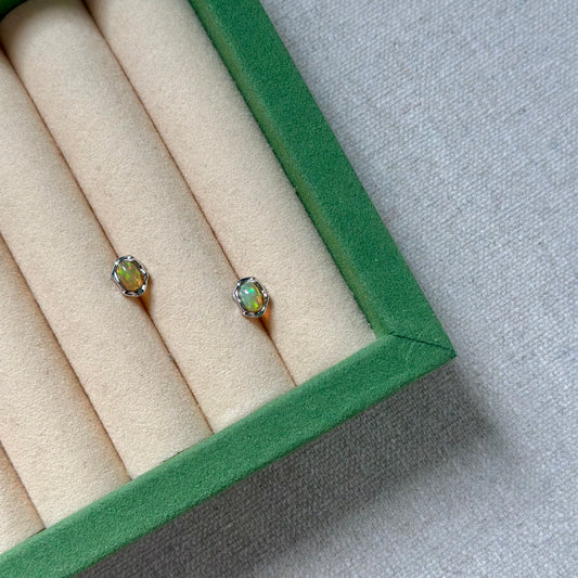 Opal Oval Sterling Silver Ear Stud