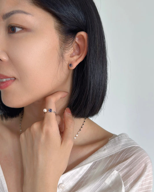 Iolite and Japan Akoya Pearl Sterling Silver Ring