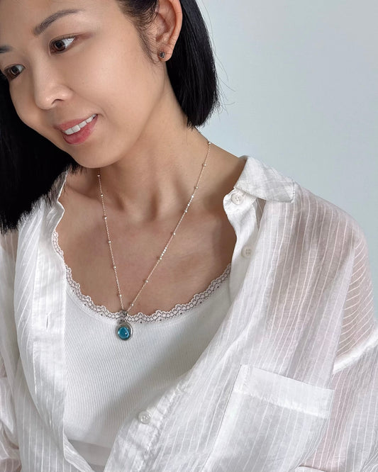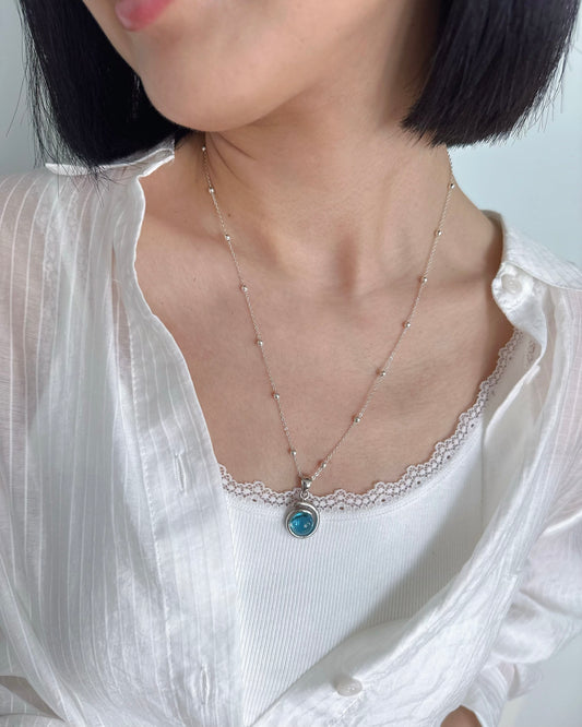 Blue Topaz 7.5cts Dotty Chain Sterling Silver Necklace