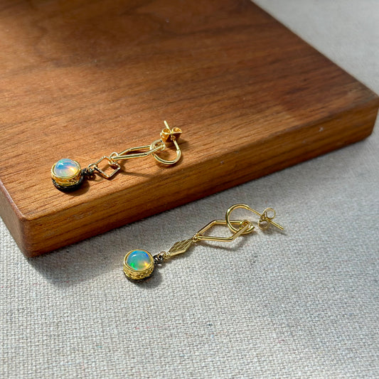 Two-way Opal And Moonstone Raw Stone Gold-plated Ear Stud