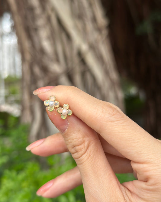 10K Solid Gold Japan Akoya Pearl And Opal Ear Stud