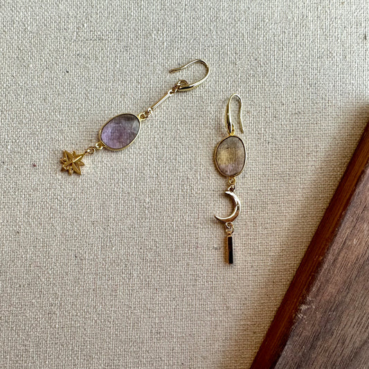 Ametrine Moon And Star Gold-plated Earring