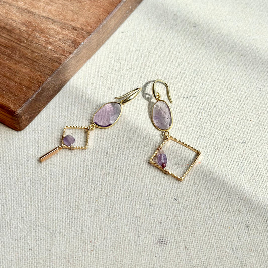Ametrine Wire Wrapping Mixed Stones Gold-plated Earring