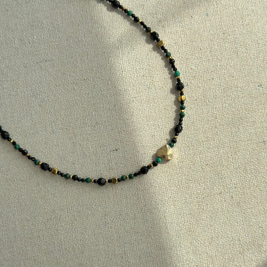 Black Spinel And Labradorite Asymmetric Beaded Necklace