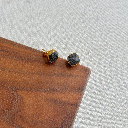 Black Rutilated Quartz Gold-plated Sterling Silver Ear Stud