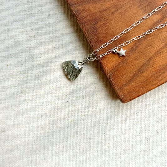 Black Rutile Quartz And Star Sterling Silver Necklace