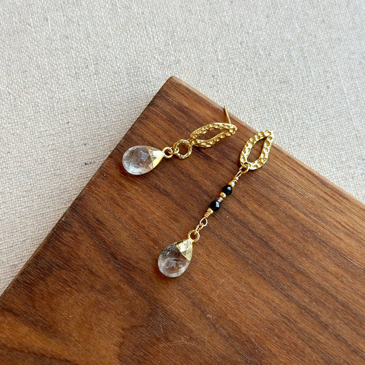 Black Rutilated Quartz And Black Spinel Gold-plated Sterling Silver Earring