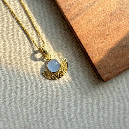 Blue Chalcedony Robe Chain Long Gold-plated Necklace
