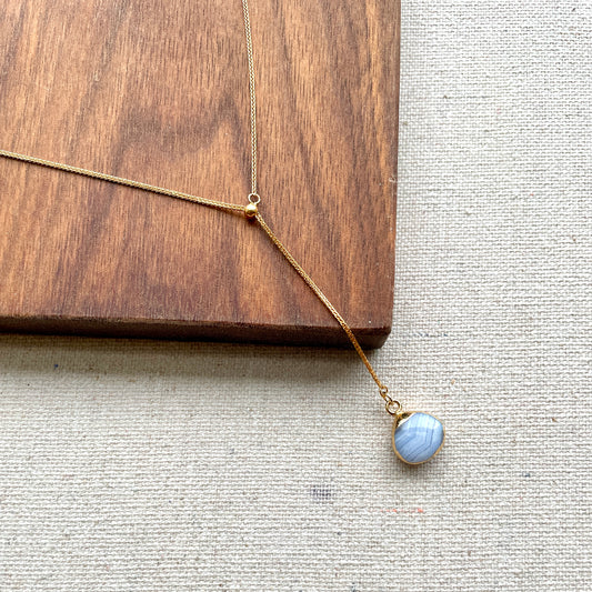 Blue Lace Agate Adjustable Y-shaped Gold-plated Necklace