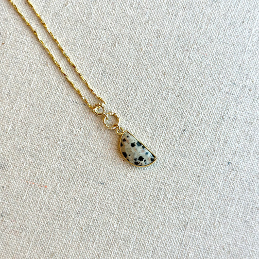 Dalmatian Jasper Half-shaped Two-way Gold-plated Sterling Silver Necklace