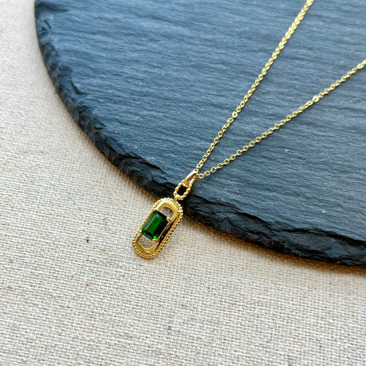 Diopside Pendant Gold-plated Sterling Silver Necklace