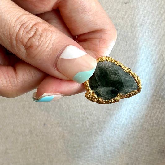 Green Rutile Quartz And Ring Long Gold-plated Necklace