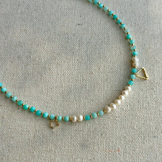 Amazonite And Apatite Beaded Mixed Freshwater Pearl Necklace
