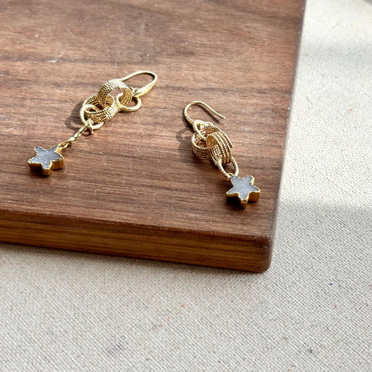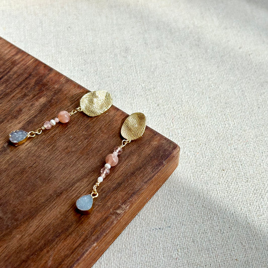 Druzy Stone And Moonstone Knots Gold-plated Earring