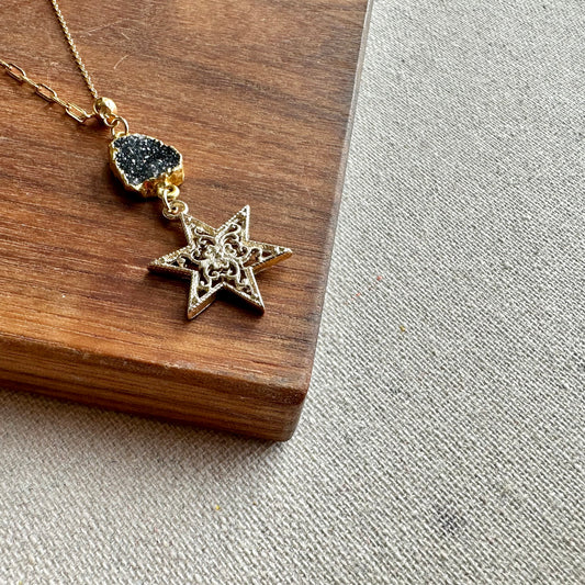Star-shaped Druzy Stone Sterling Silver Necklace
