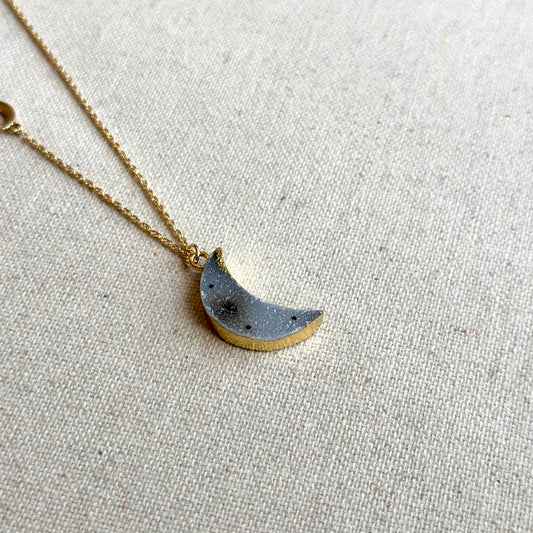 Druzy Moon Long Asymmetric Gold-plated Necklace