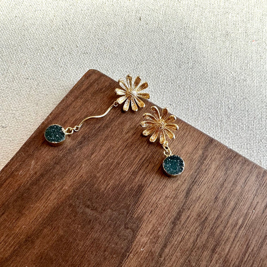 Textured Stud Druzy Stones And Mixed Stones Earring