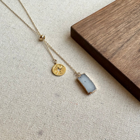 Druzy Stone Adjustable Long Gold-plated Necklace