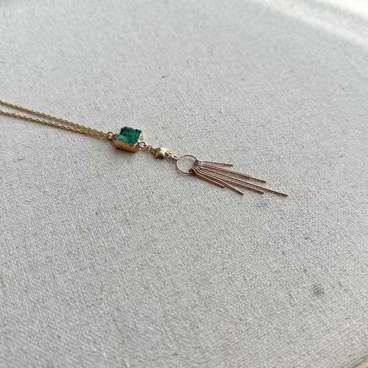 Druzy Stone And Tassels Y-shaped Gold-plated Sterling Silver Necklace