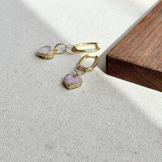 Heart-shaped Druzy Stones Gold-plated Two-way Ear Hoop