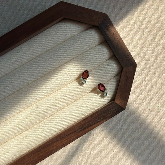 Garnet And Aquamarine Sterling Silver Ear Stud
