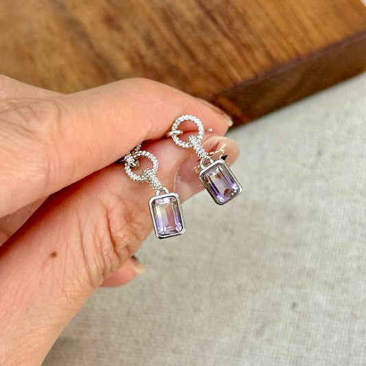 Amethyst And Chain Hoop-like Gold-plated Earring