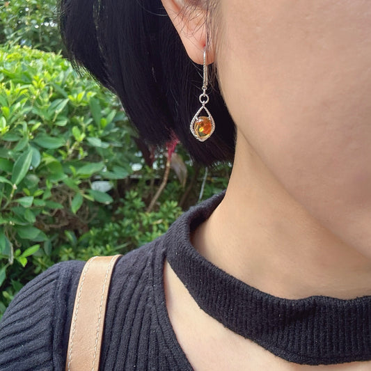 Heart Garnet Dangling Gold-plated Ear Hoop