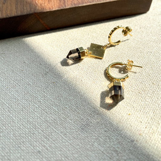 Smoky Quartz Geometric Gold-plated Ear Hoop