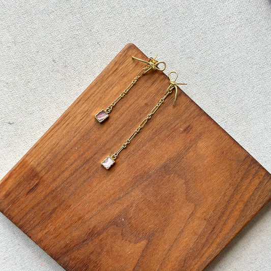 Rhodochrosite And Bow Asymmetric Gold-plated Earring