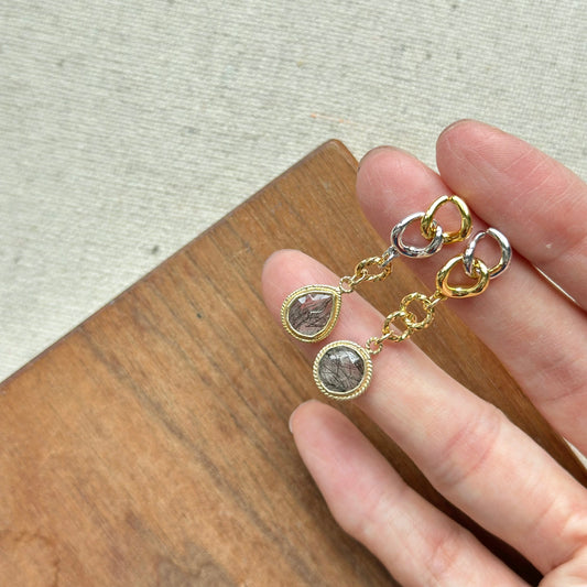 Black Rutilated Quartz Two-tone Gold-plated Earring