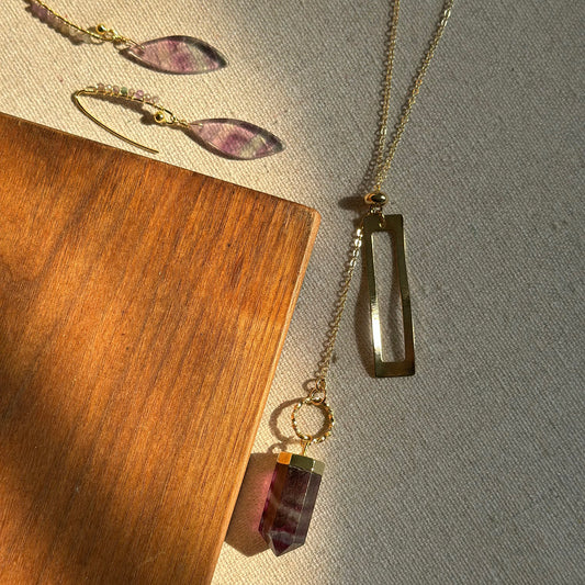 CHRISTMAS SET (2 ITEMS) Fluorite Gold-plated Long Necklace & Earring