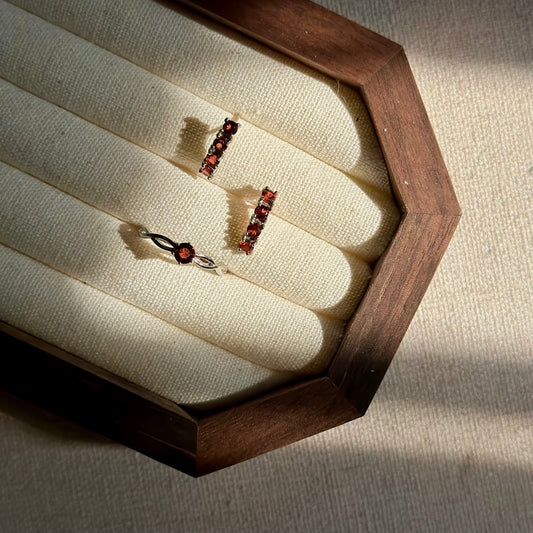 • CHRISTMAS SET (2 ITEMS) Garnet Sterling Silver Earring & Ring