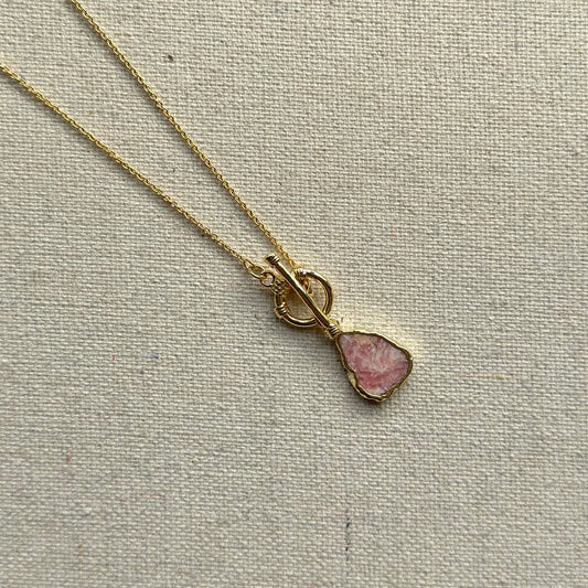 Rhodochrosite Hoop Toggle Long Gold-plated Necklace