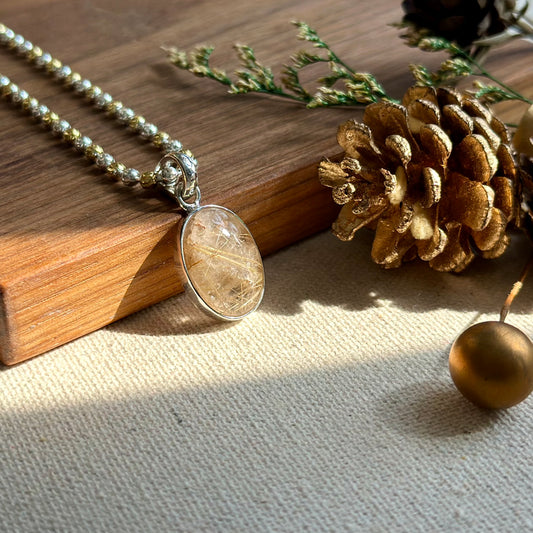 Golden Rutilated Quartz Pendant Two-tone Gold-plated Sterling Silver Necklace