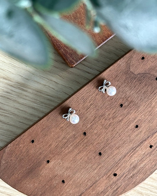 Japan Akoya Pearl Bow Sterling Silver Ear Stud