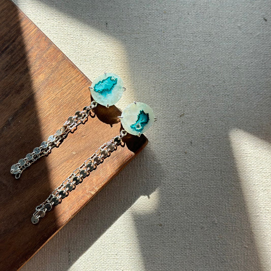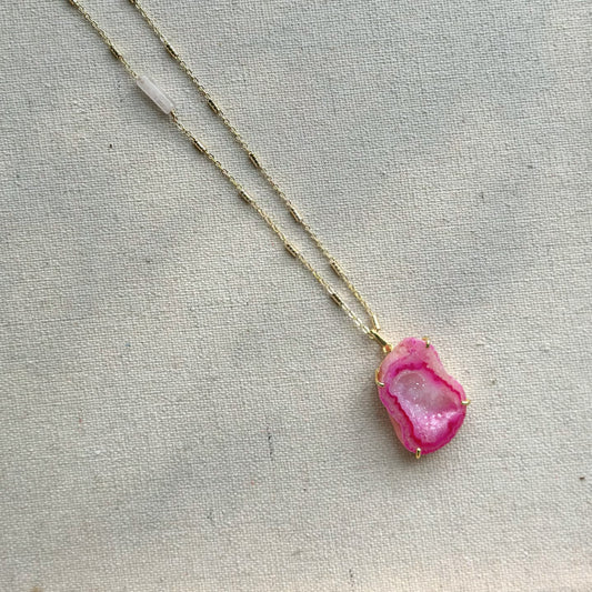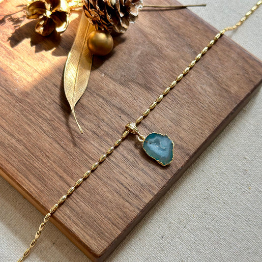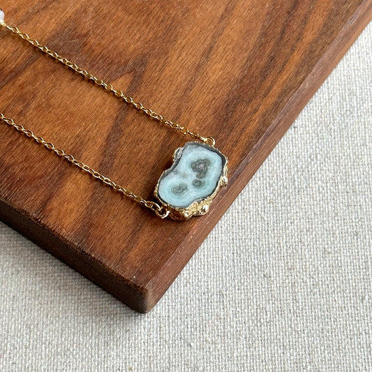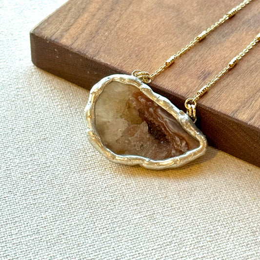Oversized Agate Raw Stone Two Tone Gold-plated Extra Long Necklace