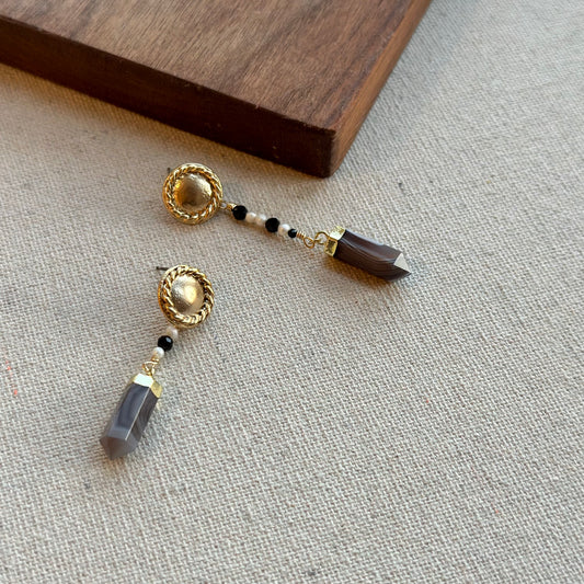 Botswana Agate And Spinel Gold-plated Ear Stud