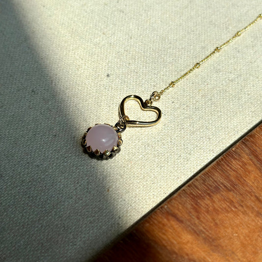 Rose Agate Heart Hoop Toggle Gold-plated Necklace