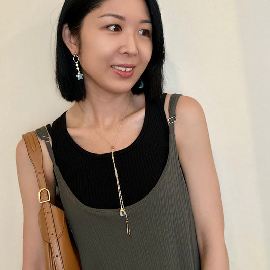 Moss Agate Geometric Y-shaped Long Gold-plated Necklace