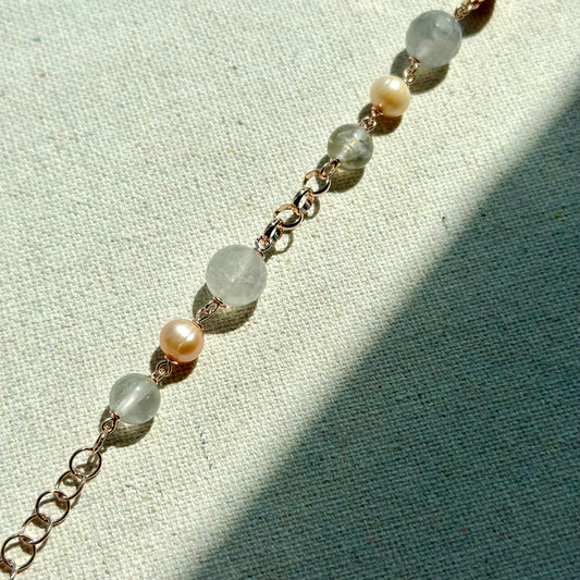 Green Agate And Prehnite Mixed Freshwater Pearl Beaded Two-way Necklace