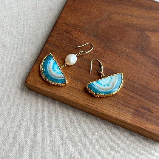 Agate Half-shaped And Freshwater Pearl Gold-plated Earring