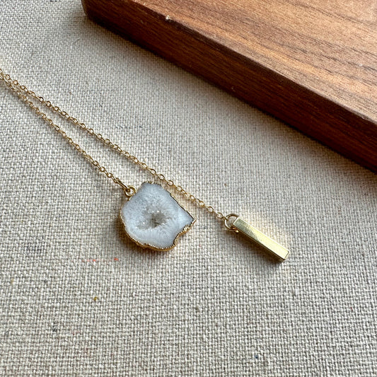 White Agate Long Adjustable Gold-plated Necklace
