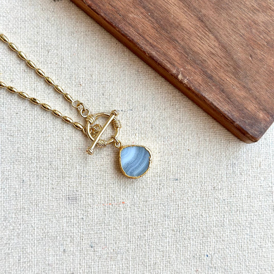 Blue Lace Agate Hoop Toggle Gold-plated Necklace
