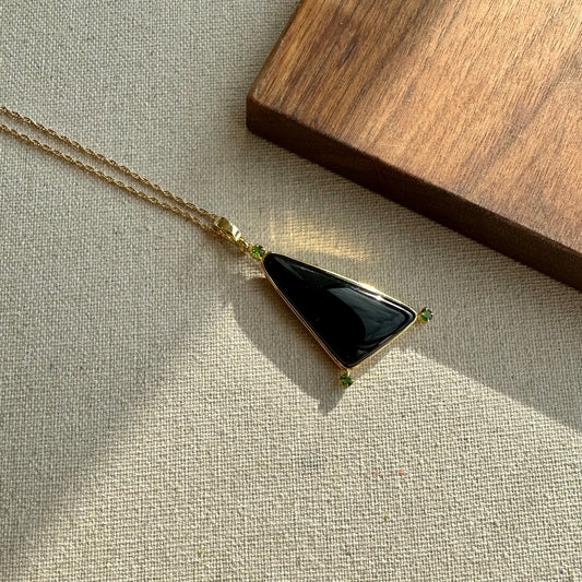 Black Agate And Diopside Long Gold-plated Necklace