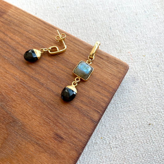 Black Agate And Labradorite Gold-plated Ear Hoop