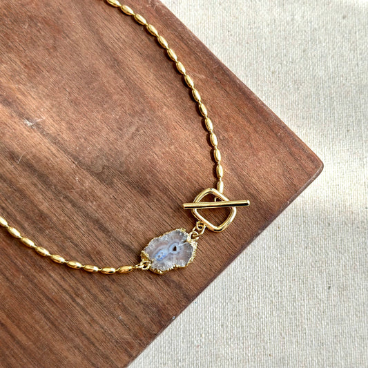 Agate Stone Hoop Toggle Gold-plated Necklace