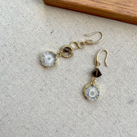 White Agate And Smoky Quartz 14k Gold-filled Wire Wrapping Earring