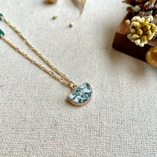 Agate And Moss Agate Beaded Rose Gold-plated Italian Sterling Silver Chain Necklace