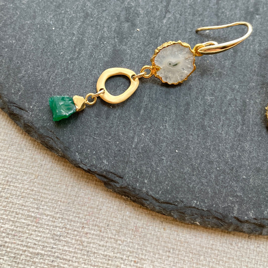 Heart-shaped Green Moss Agate And Freshwater Pearls Earring