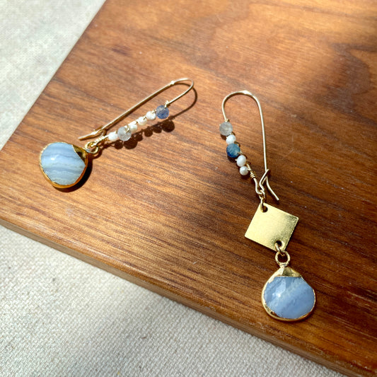 Blue Lace Agate And Kyanite Wire Wrapping Earring